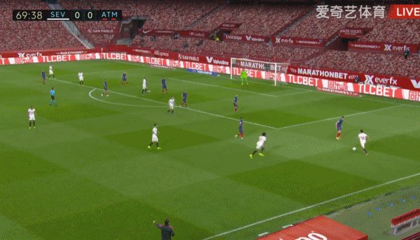 70'塞维利亚右路配合,纳瓦斯送出传中,阿库尼亚头球破门!1比0!马竞投诉此前奥坎波斯手球,但主裁判并未回溯这一过程